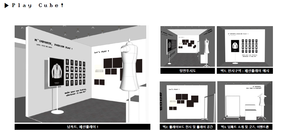 넘폭트의 부스 구성은 상기와 같으며 다양한 패턴을 기반으로 한 패션 플레이가 가능하게 되어있다.